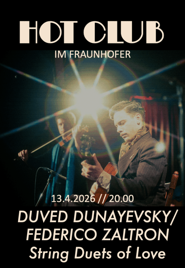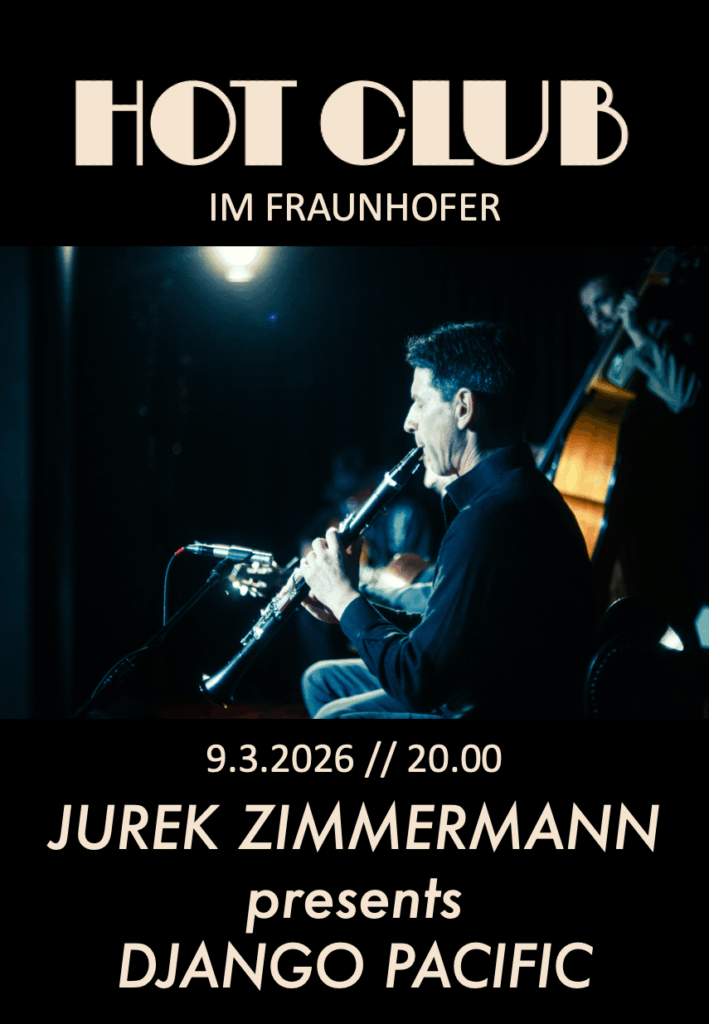 AUSBLICK AUF DIE SPIELZEIT 2025/26: Daniel Garlitsky/Antonia Dering, Elias Prinz/Theo Kollross/Ida Koch,, Jurek Zimmermann Quartett, Duved Dunayevsky, Elise Vasallucci, The Upstroke FIVE uvm. Hot Club im Fraunhofer wird in der Saison 2025/26 gefördert durch das Programm LIVE 500 der Initiative Musik. Mitglieder erhalten verbilligten Eintritt!